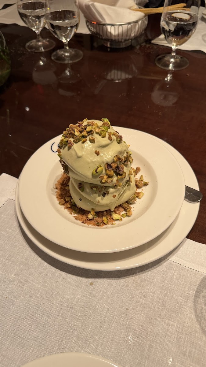 Great all around. Our server Hemingway spent time getting to know us and was class. The wine specialist was extremely pleasant and knowledgeable. The rest of the staff extremely welcoming and on top of everything. Food was great, get the pasta and the pistachio ice cream at the end which they put a candle in for a birthday. Amazing building/room.