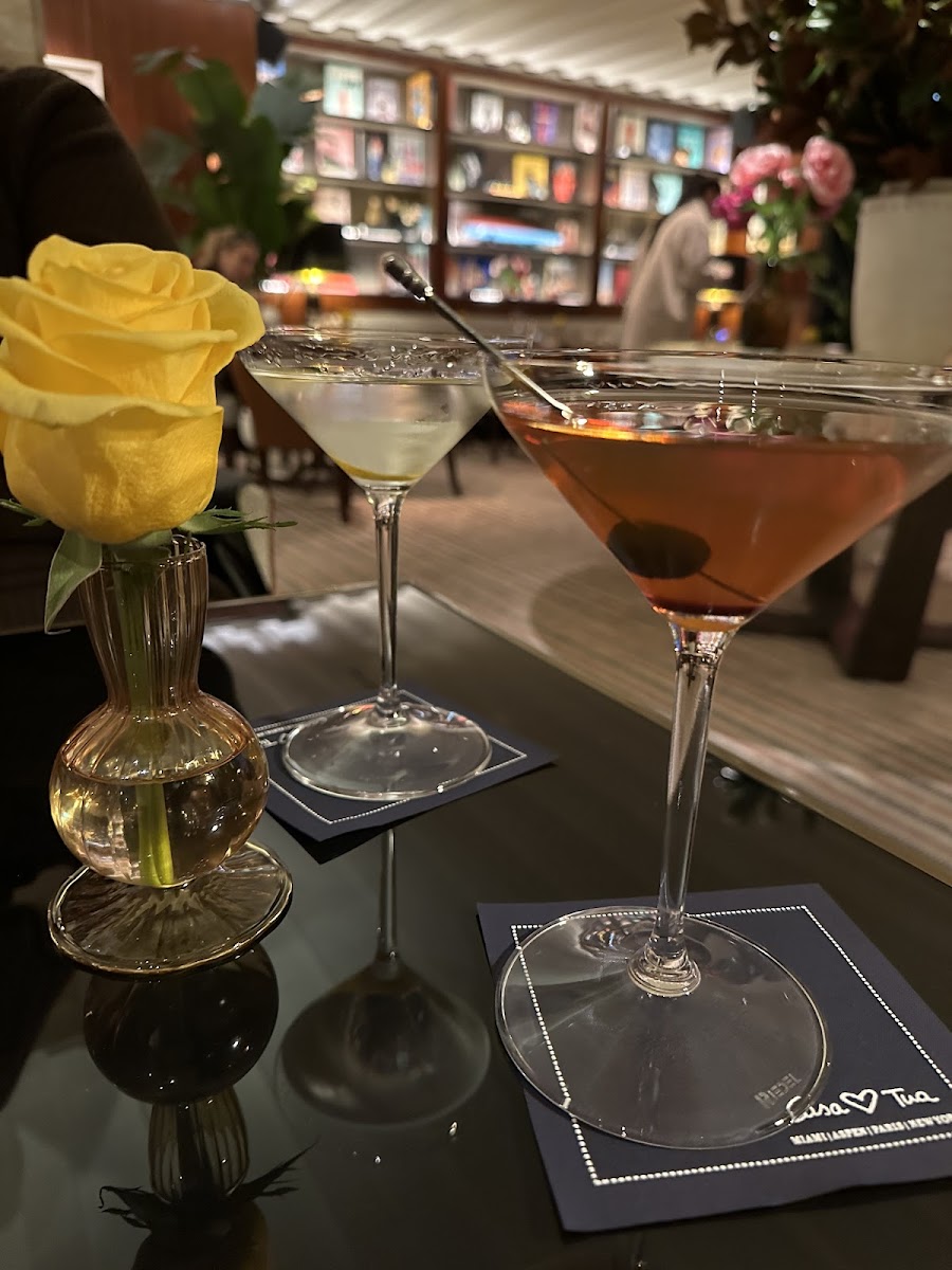 Casa Tua is within The Surrey hotel in NYC. ( and we love The Surrey!) There are 2 sides to the restaurant. One is the restaurant itself and the other is more of a bar. The service in the restaurant is wonderful and the food is superb. The lighting and ambiance is soft and elegant. We have had dinner there only once and it was a lovely experience. The staff is attentive and professional. They have a warmth about them which makes you feel so welcome. I particularly love the art (large photographs of relaxing family times and food!) they have displayed. My husband and I enjoy their bar for a cocktail. The experience within the bar mirrors the restaurant but is more intimate yet still very chic and cool. Colorful and vibrant books (as in large coffee table books) are the primary decor. They line the walls. Are displayed with subtle lighting, on tables. Cozy seating, comfy chairs. Someone, likely the manager, Daniele Balsano, will be there to open the door to welcome you with a smile, an Italian greeting, and maybe a kiss on your hand ( I approve. No worries!) Daniele does an excellent job tending to the patrons and making everyone feel welcome ( in his home!) If he’s not juggling the workings of the bar behind the scenes, he’s with his guests, making sure our needs are met. He’s so good at juggling the tasks at hand while elegantly tending to his guests. The bartenders are delightful. Sometimes I’m indecisive and each time they offer suggestions and try new things and the results are always delicious. The bar area is fairly small so if you like to sit at the bar, like we do, better get there early or wait patiently. Prepare yourself for a wonderful experience!